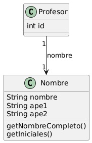 En el siguiente diagrama UML se ve que la relación es desde Profesor hacia Nombre.